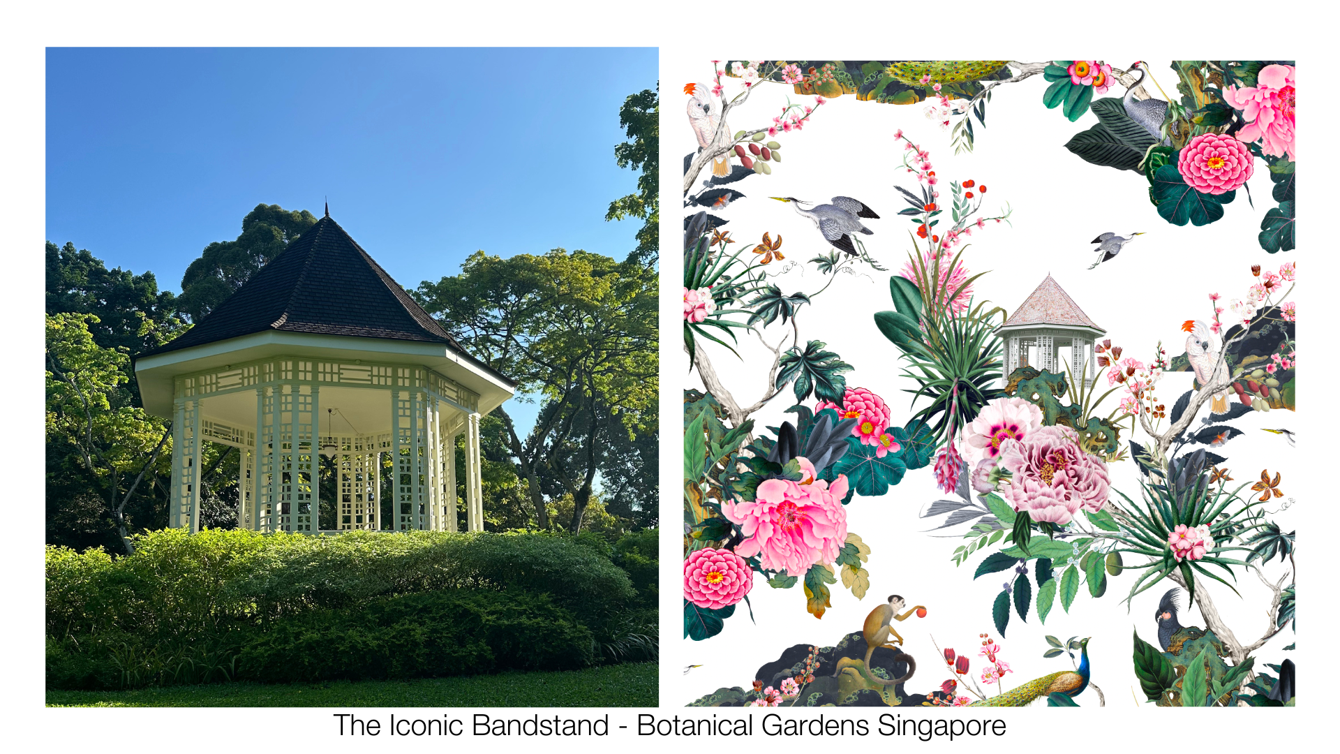 The Tree of Life design includes peonies, cockatoos, peacocks and the iconic bandstand in the Singapore Botanical Gardens. And a monkey.